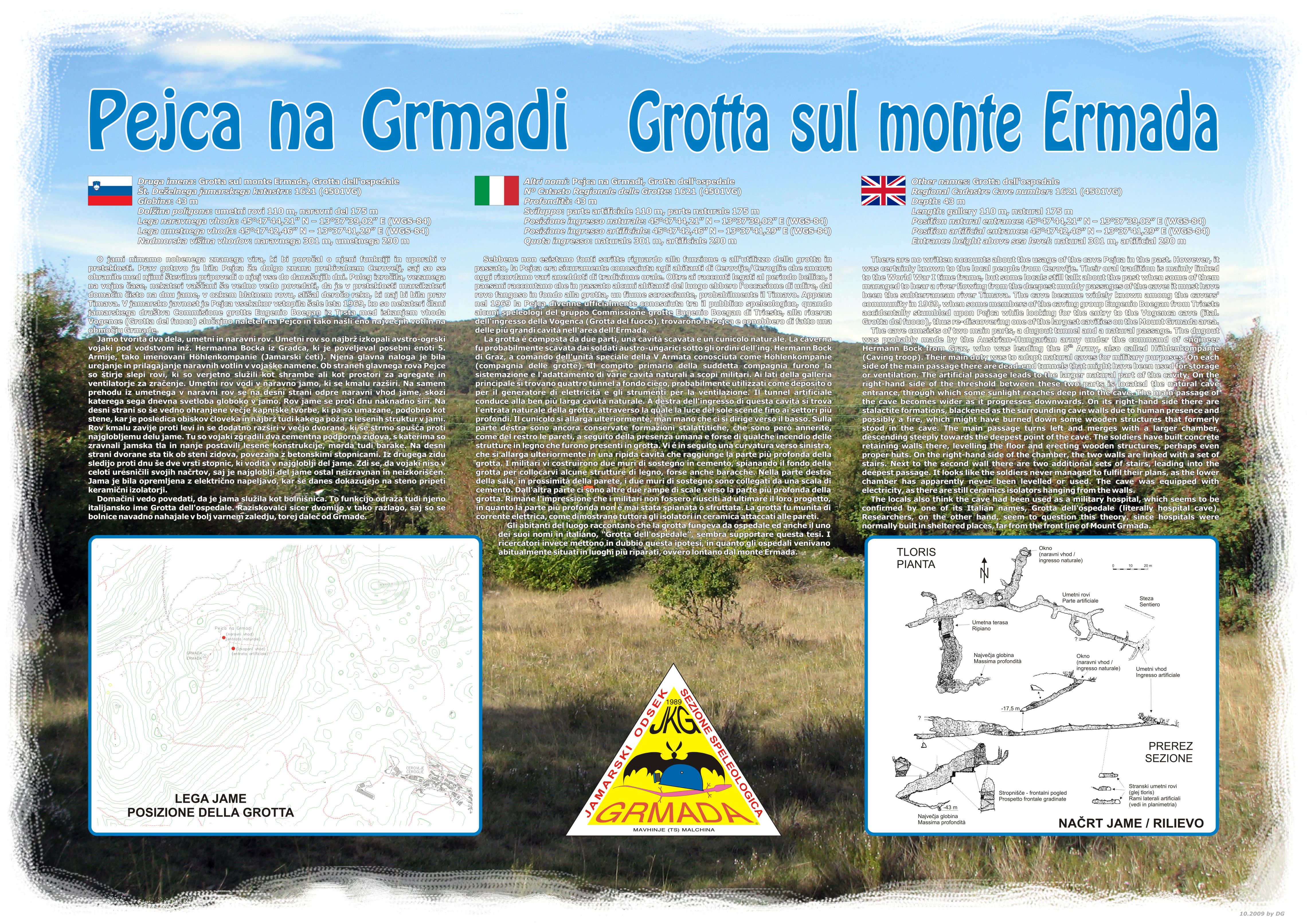 Descrizione: Cartellone della grotta Pejca na Grmadi (Grotta sul monte Ermada).